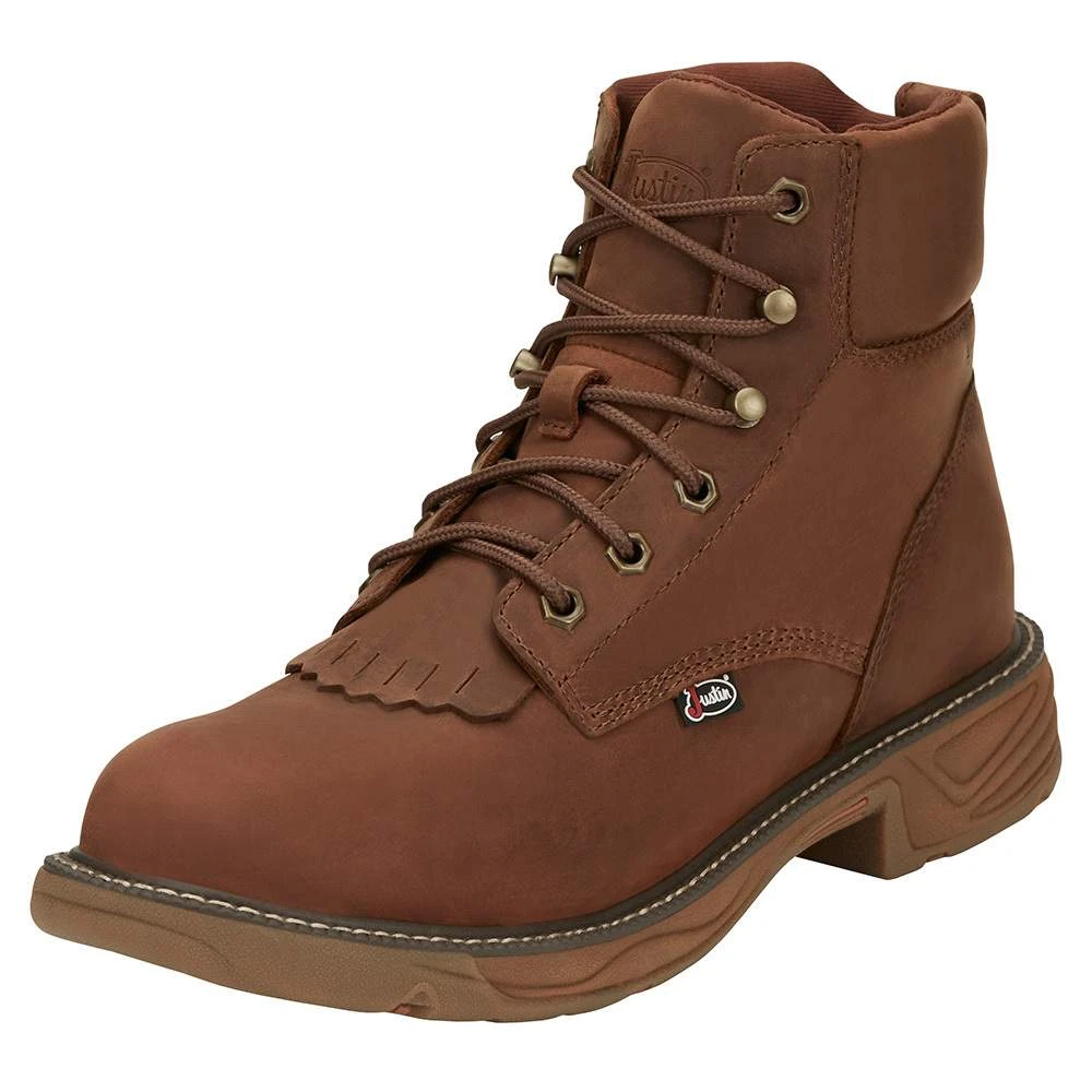 Get ready to work in comfort in our 6″ lace up boots from Justin Boot Company.