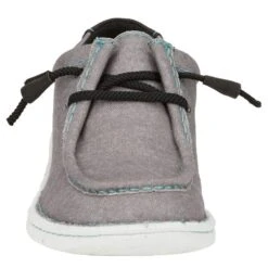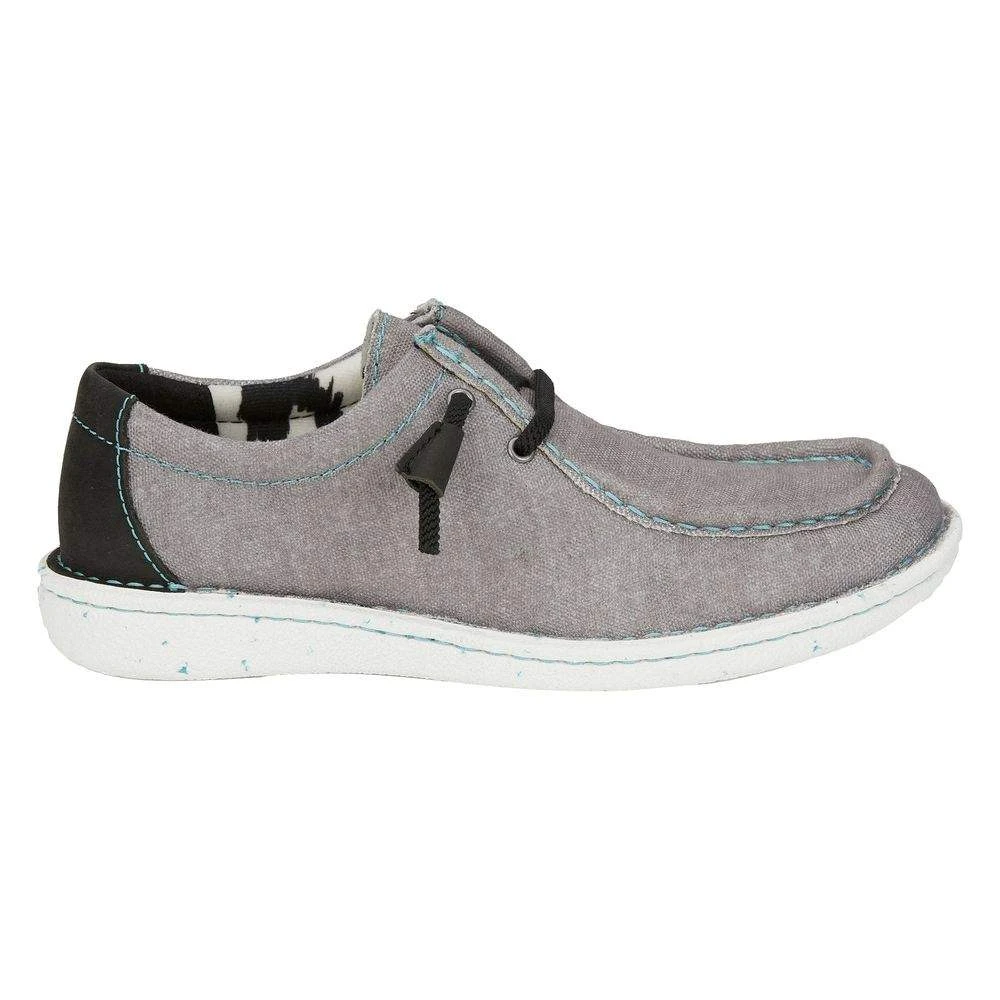 The Women’s Hazer in a Grey canvas from the Justin Casuals Collection features a laid-back moc-toe styling with a cushioned insole.