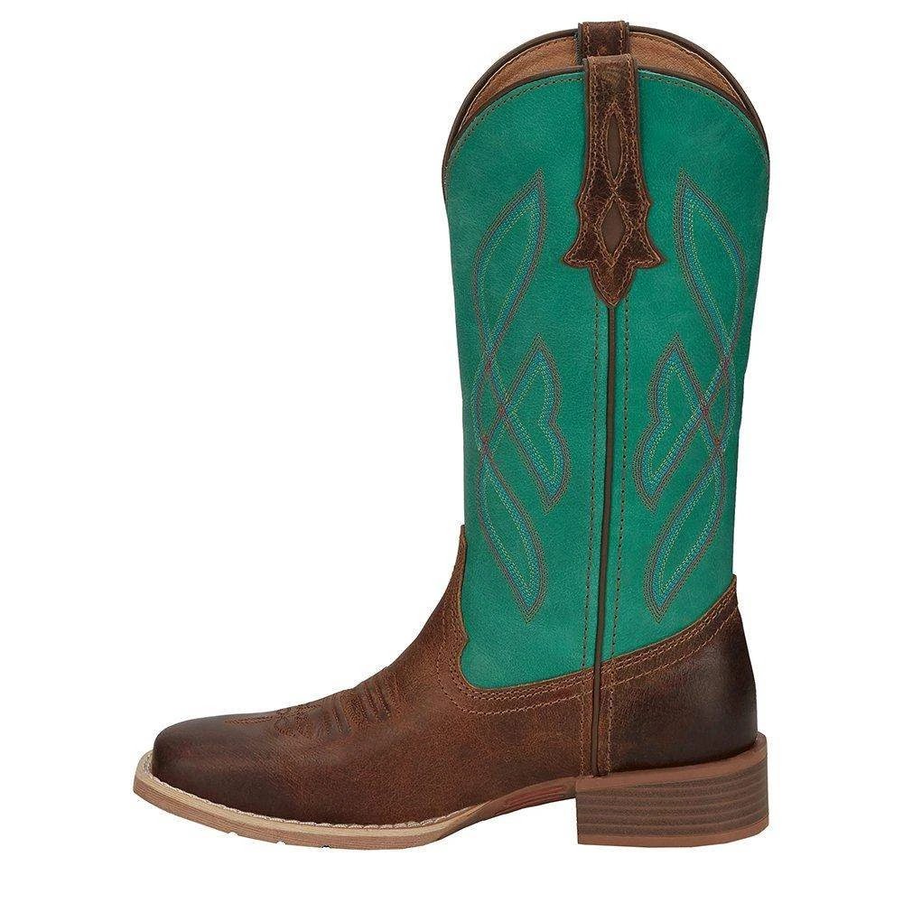 Its turquoise leather upper is accented by a simple stitch pattern. The waxy tan foot paired with the square toe gives this boot a classic look. The J-Flex Flexible Comfort System insole with removable orthotic inserts guarantees lasting comfort for the free spirit ready to run wild.