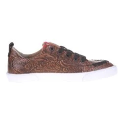Laid-back style with unique Western artistry and flair! The Susie is crafted in a gorgeous embossed floral print, with an iconic retro image of cowgirl Reba presiding over it all!